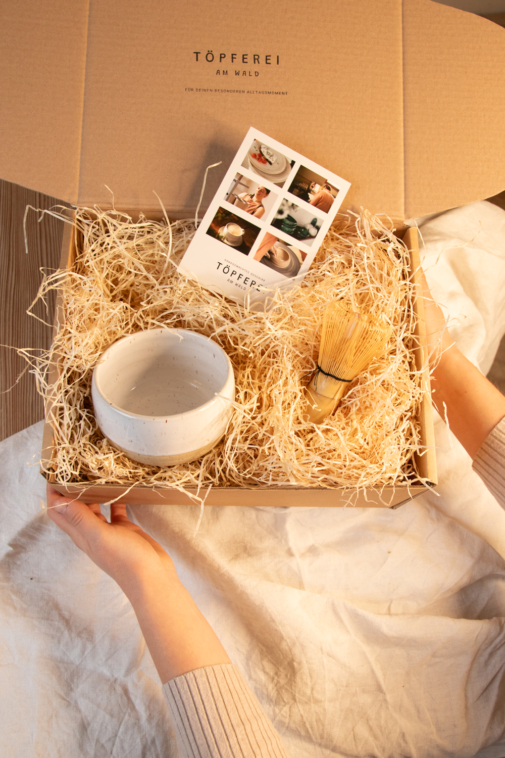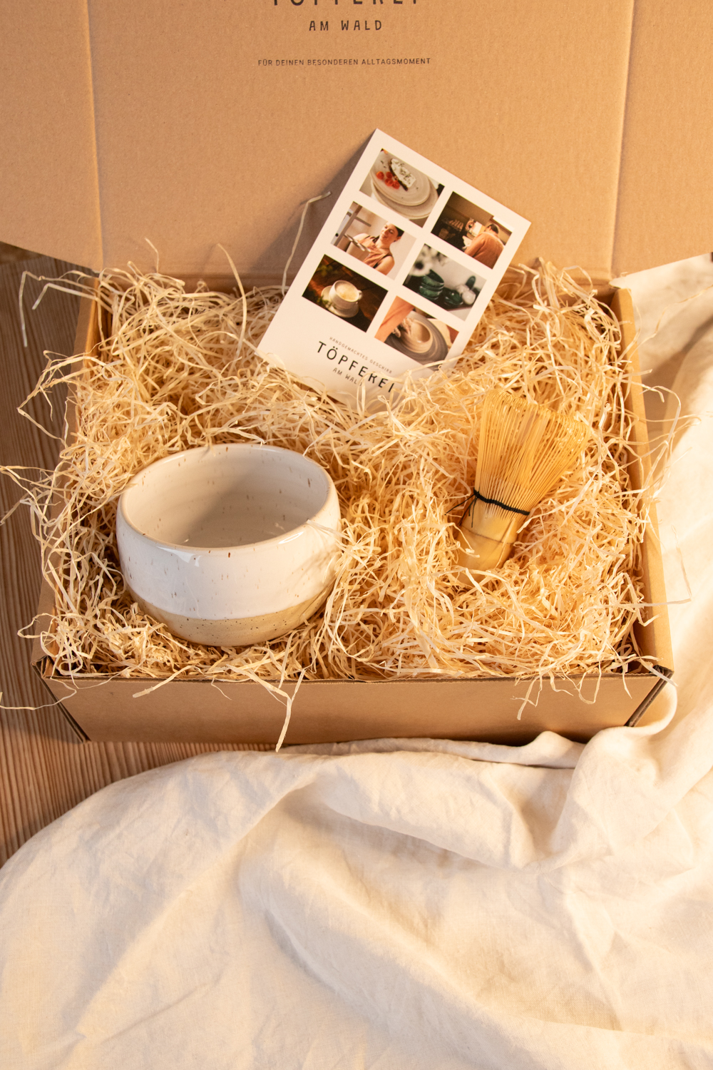In jedem Set ist eine handgetöpferte Schale und ein Chasen (Matchabesen) enthalten.