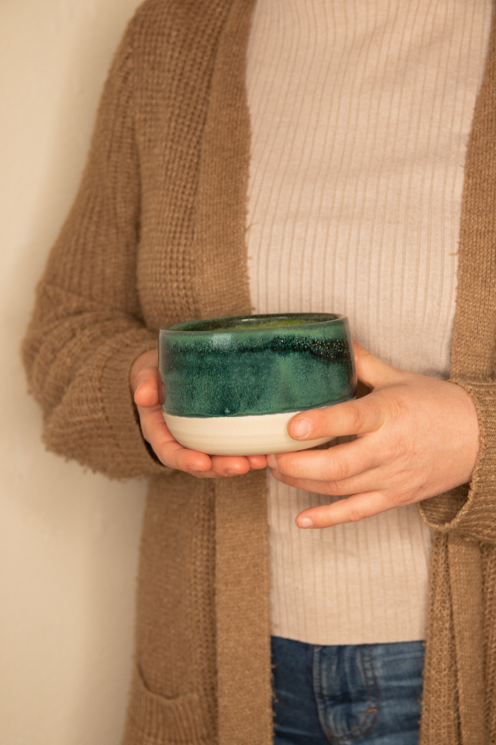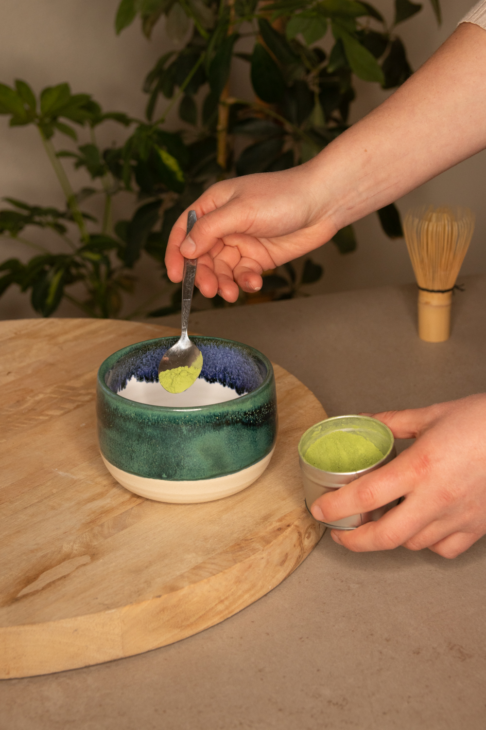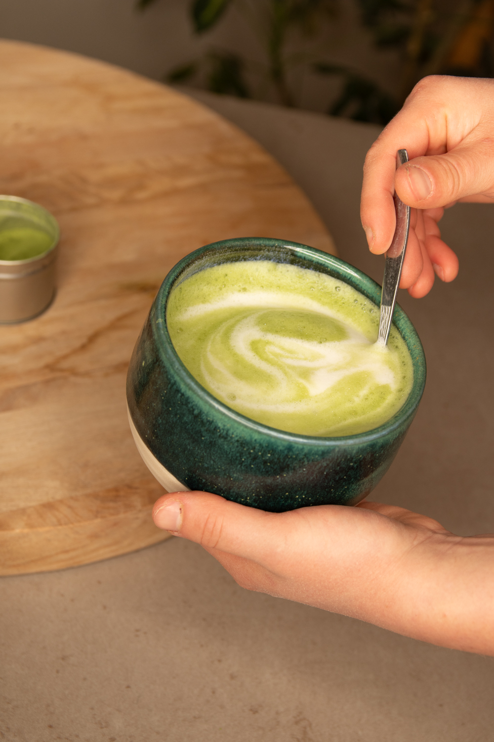 - die Form eignet sich perfekt für das Aufschlagen von Matcha, da nichts über den Rand spritzt. Auch das Trinken fühlt sich aus dieser Schale angenehm an, und sie liegt gut in der Hand.