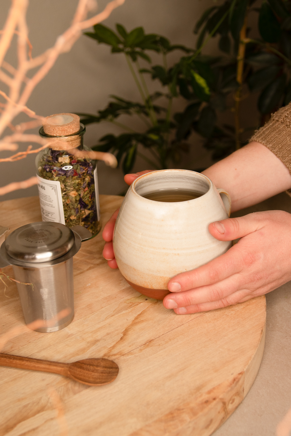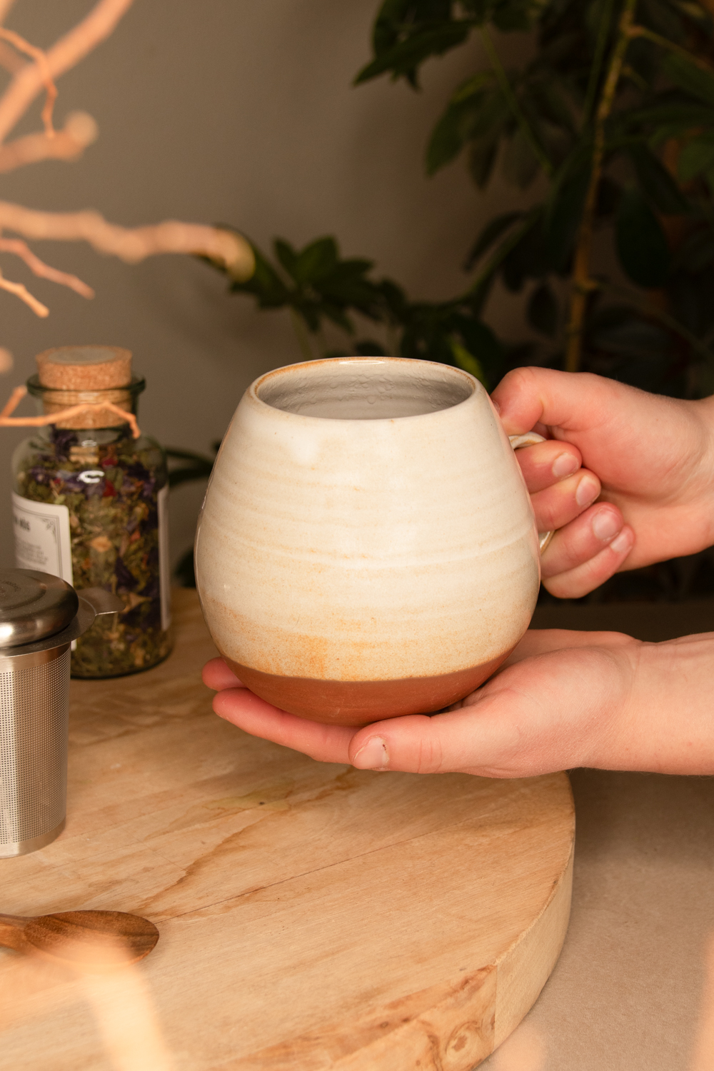 Verschenke einen Moment der Entspannung mit einer einzigartigen handgetöpferten Tasse.