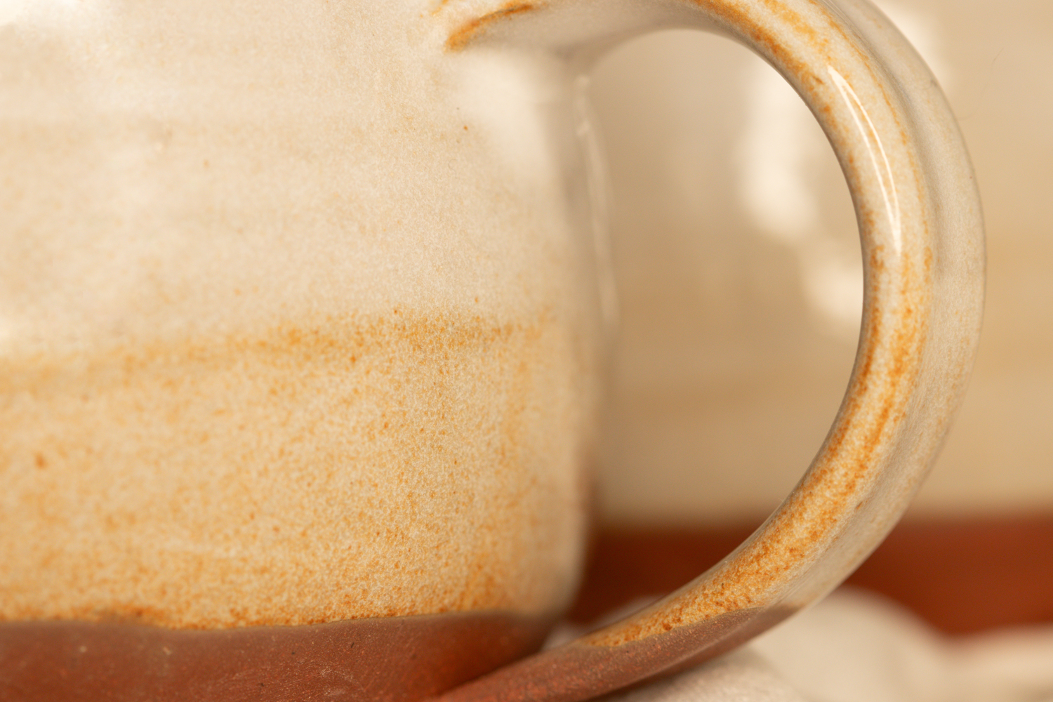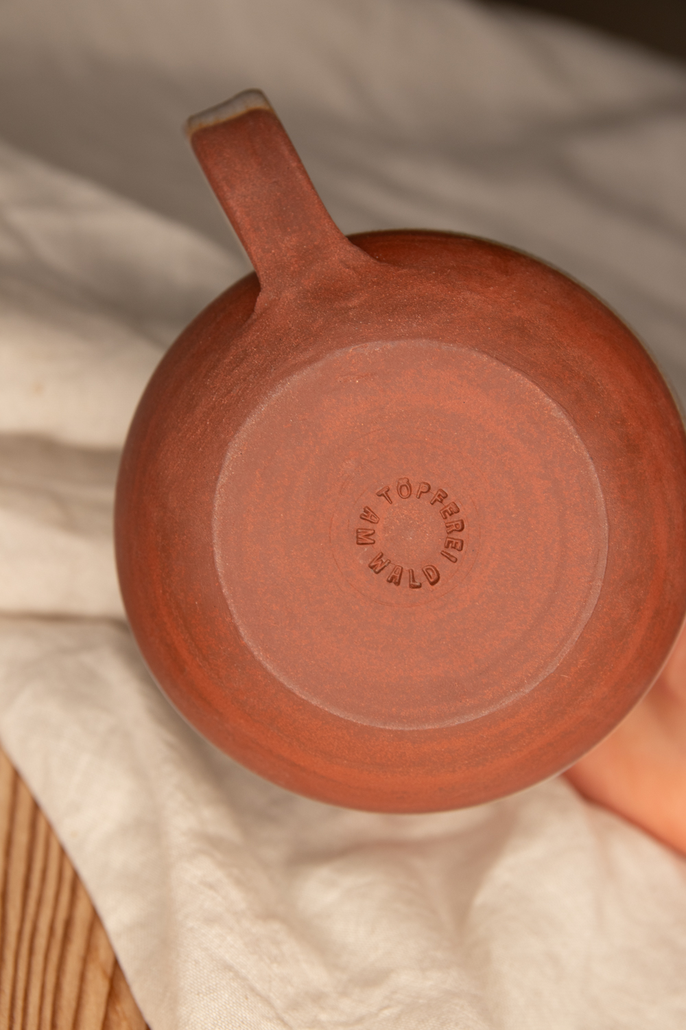 Unsere halbtransparente weiße Glasur lässt den darunterliegenden rotbaunen Ton leicht durchschimmern.