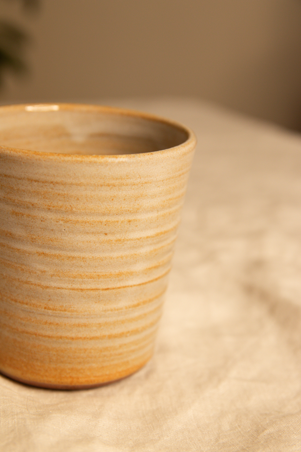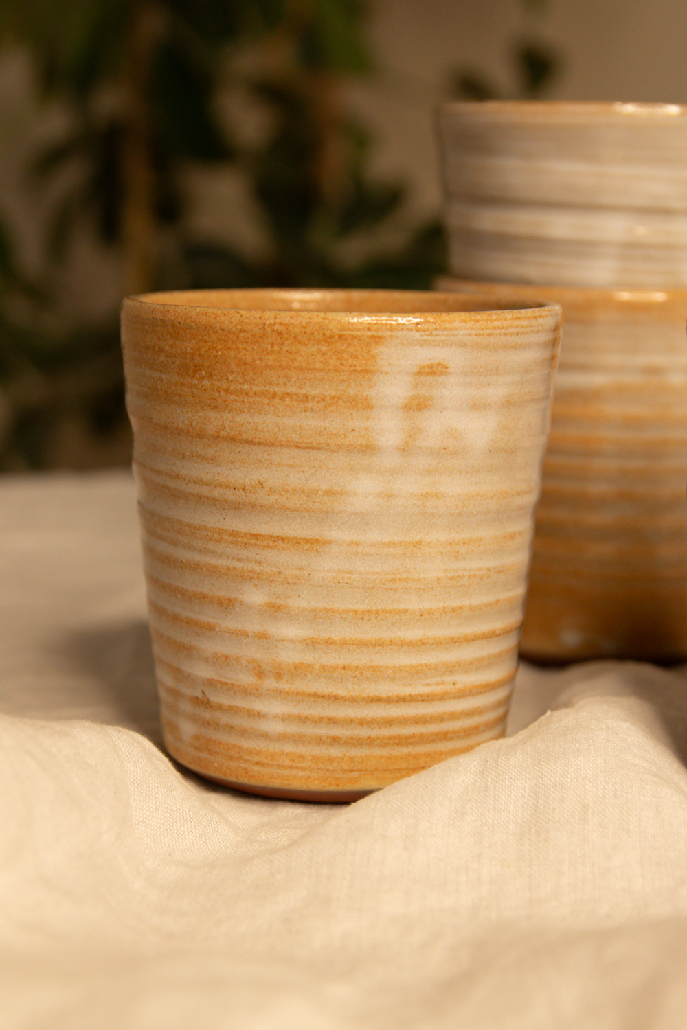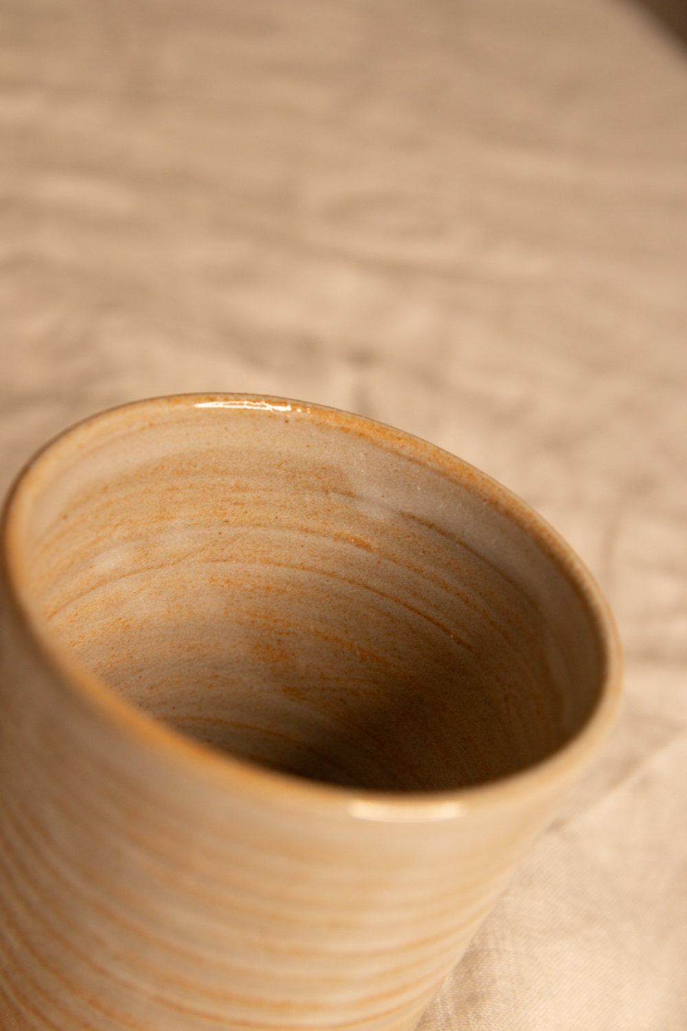 Bei diesen Bechern haben wir die Außenseite bewusst nicht geglättet, sodass die Drehspuren sichtbar sind. Das verleiht jedem Becher einen natürlichen Look und zeigt die Handarbeit, die darin steckt.